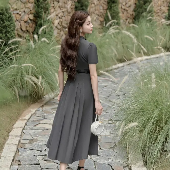 Váy Đầm Nữ Dáng Dài Xòe Xếp Ly Thanh Lịch Công Sở SOLEIL – Tochie Dress