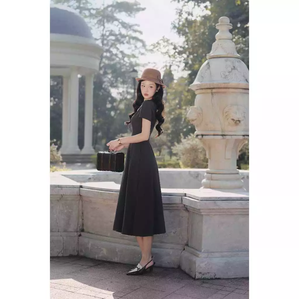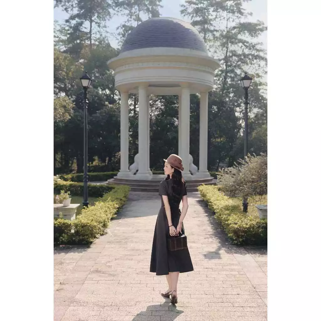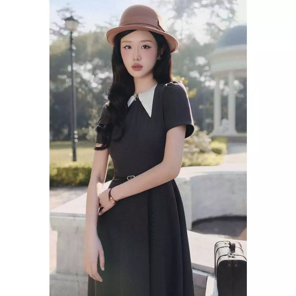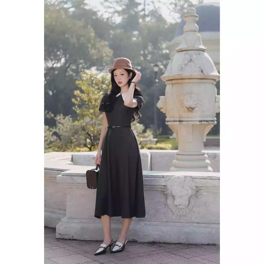 Váy Nữ Thiết Kế Dáng Xòe Cổ Sen Phối Màu Retro Tiểu Thư SOLEIL – Solin Dress VD155